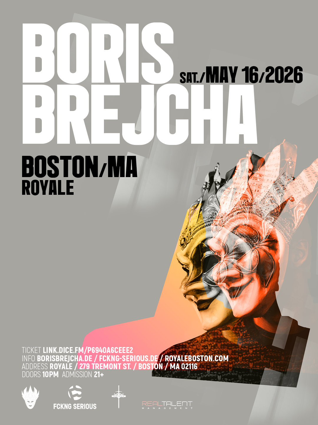 May 16th Germany’s Boris Brejcha lands at Royale. Boris is known for championing his own style of